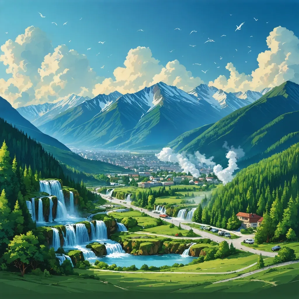 - Природные достопримечательности: чистый горный воздух, живописные горы, водопады и минеральные источники.